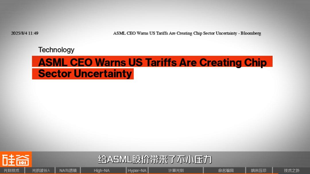 但ASML的CEO Christophe Fouquet也在今年7月中旬警告称,受美国关税政策影响,ASML可能无法在2026年实现增长,由此也引发了最近股价的大幅下跌。