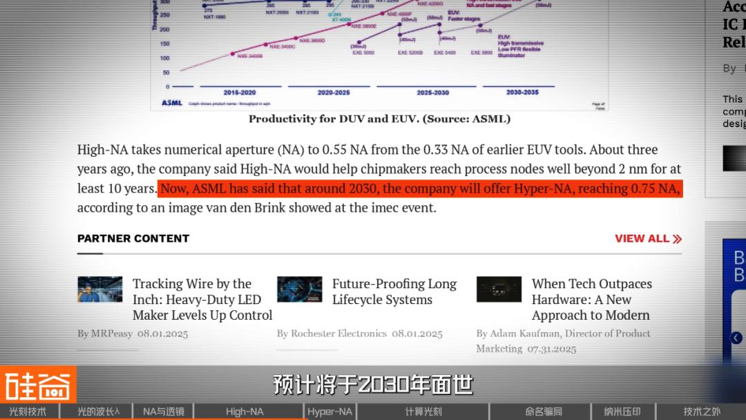 在采访嘉宾看来,Hyper-NA距离实际应用还太遥远,接下来十年内,光刻机的重点依然是High-NA。