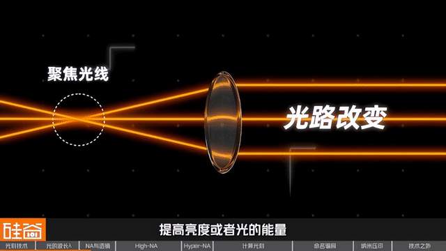 在DUV光刻机的结构中,光线要通过一组硕大的透镜组,才会打到晶圆上,NA表示这些透镜收集光线的能力。