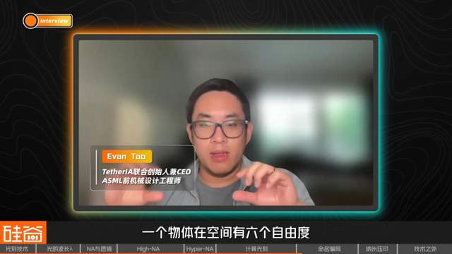 这个台座它是采取磁悬浮的状态,一个物体在空间有六个自由度,因为当时我说的有Twin Station(双工作站),就是Twin Scanner(双扫描仪),根据那边扫描过的表面平整,它把这个数据记录下来,(后续)在曝光的时候,它根据那个平整的误差,它要及时进行(高低)调整,这样才能保证去修正它的不平整性。