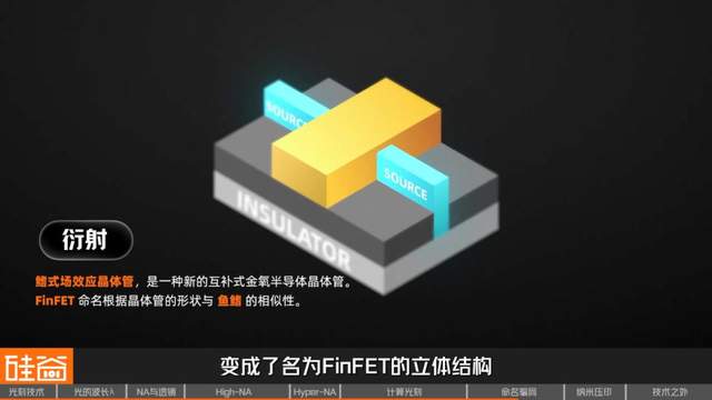但随着晶体管越做越小,由于量子隧穿效应,晶体管就容易漏电,具体的原理我们就不多解释了,为了应对这一问题,工程师们决定让晶体管长出“鱼鳍”,变成了名为FinFET的立体结构。