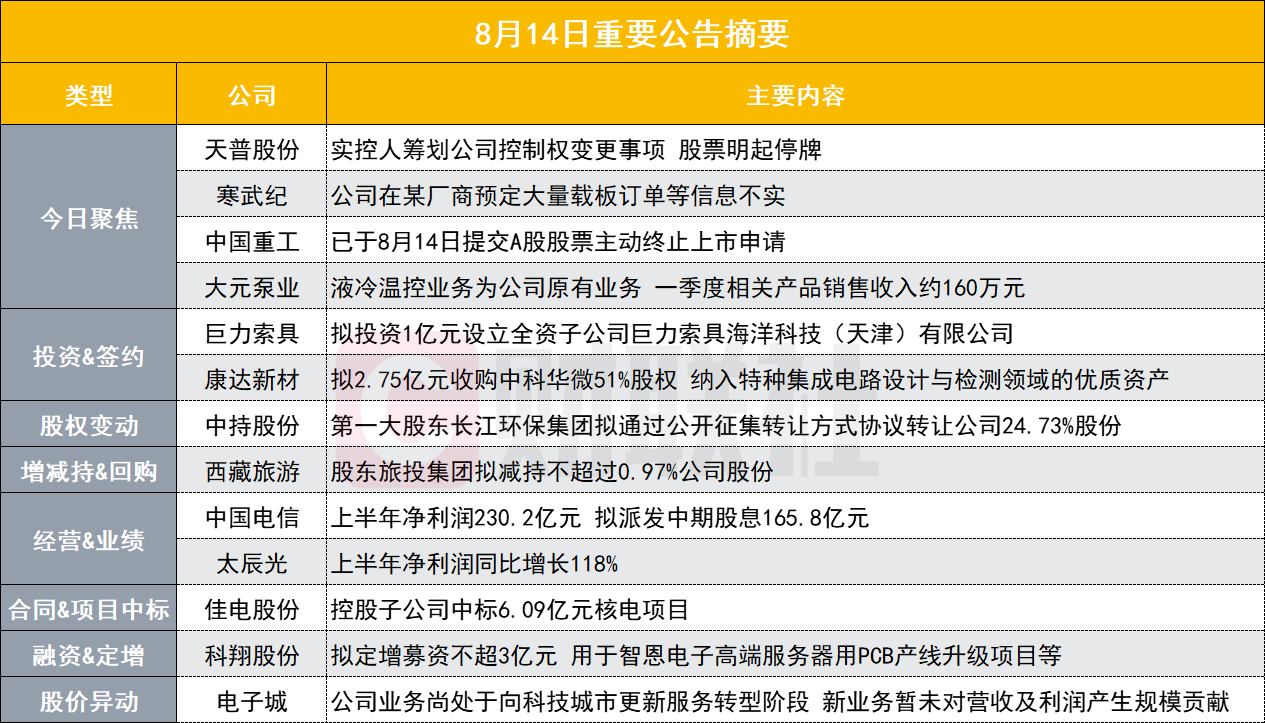 天普股份(605255.SH)公告称,公司实际控制人尤建义正在筹划重大事项,可能导致公司控制权发生变更。为保证公平信息披露,维护投资者利益,公司股票于2025年8月15日停牌,预计停牌时间不超过2个交易日。