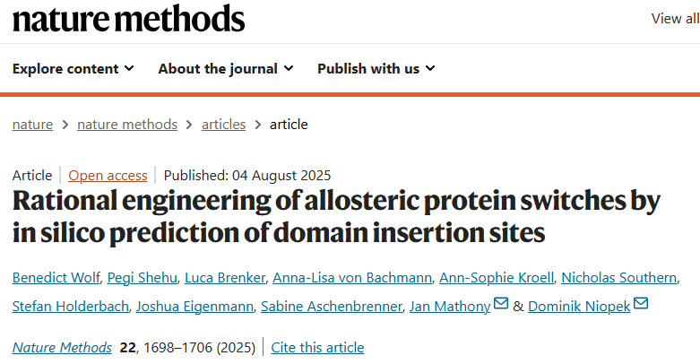 Wolf, B., Shehu, P., Brenker, L. et al. Rational engineering of allosteric protein switches by in silico prediction of domain insertion sites. Nat Methods 22, 1698–1706 (2025).