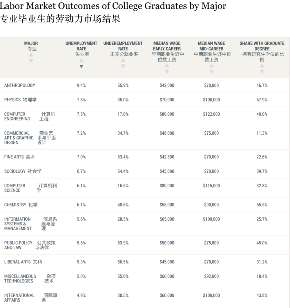 而生物学和艺术史毕业生失业率竟然才3%,计算机是它们的两倍以上。