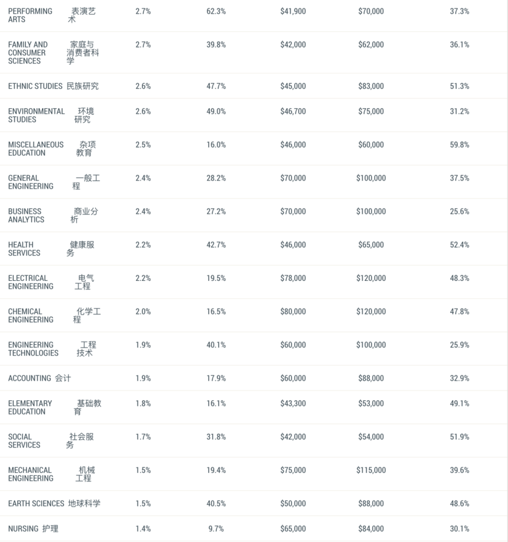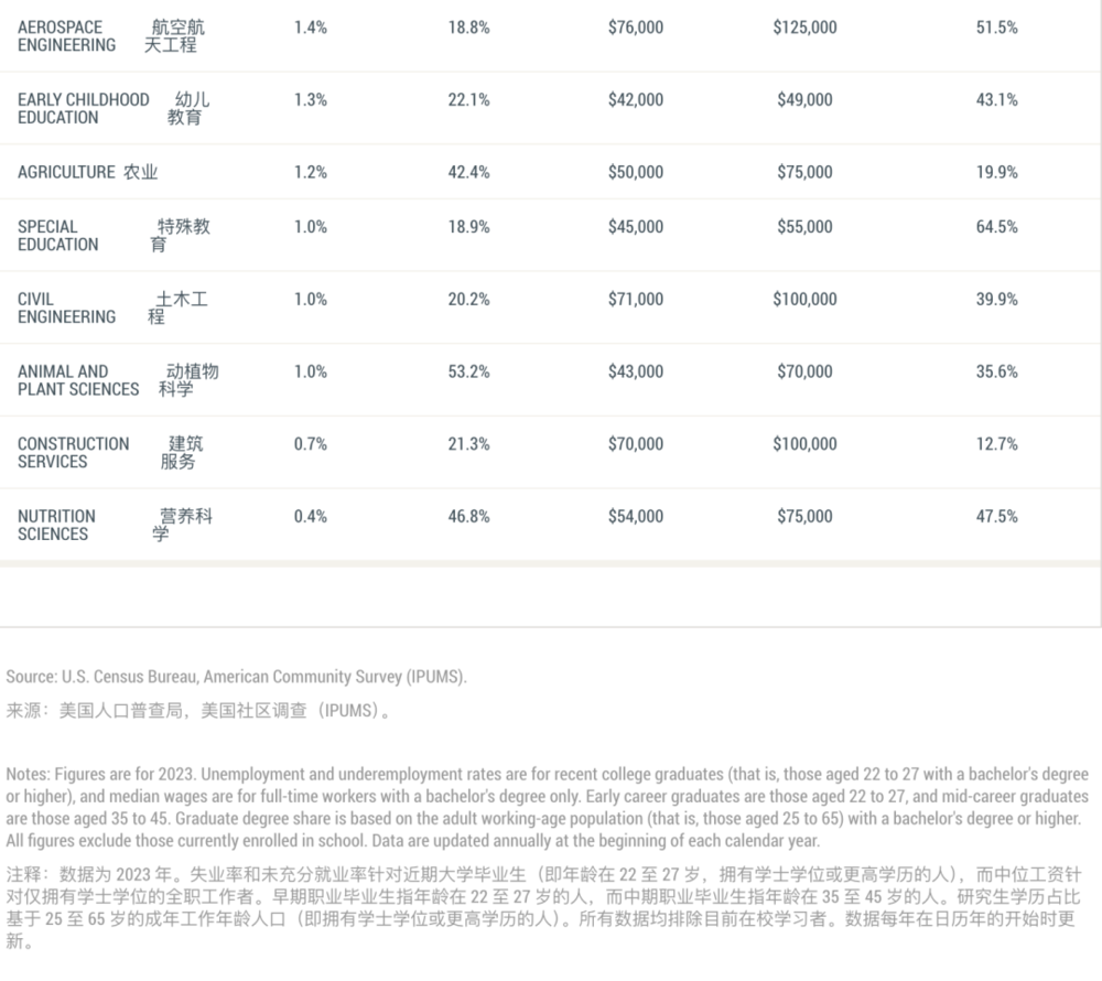 纽约联邦储备银行统计的各专业毕业生就业情况