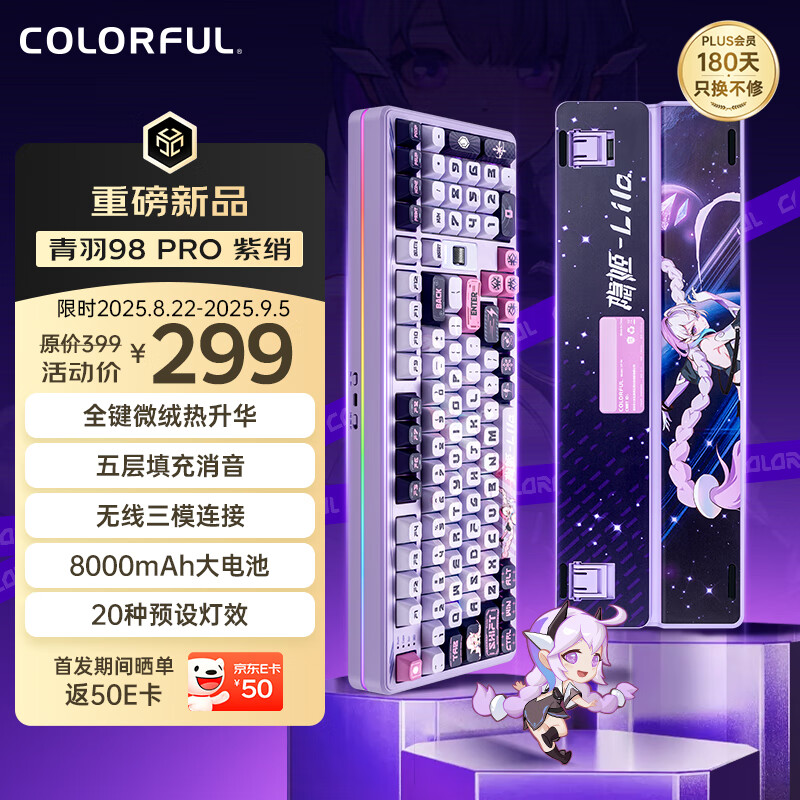 京东七彩虹青羽 98 Pro 机械键盘 299 元直达链接