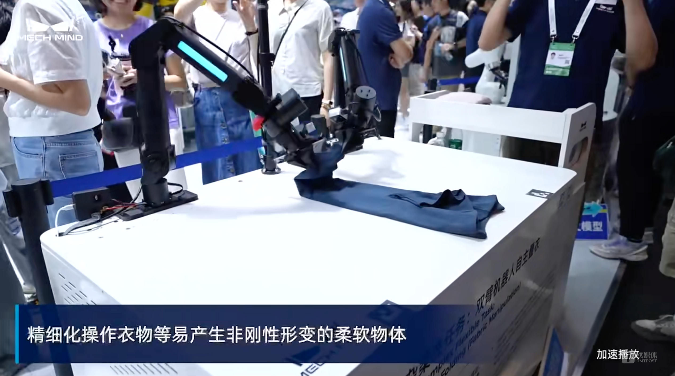 不久前,我们参加了2025 WAIC 世界人工智能大会,几天下来,梅卡曼德成了全场最热门的展位之一,中午十二点半还人头攒动,一直到闭幕最后一刻都挤满了观众,大家都在围观机器人是怎么叠衣服、怎么当“拣货员”、“售货员”的。