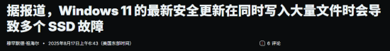 近日,有用户反馈,最新的Windows 11安全更新可能在执行大量数据写入操作后,导致部分固态硬盘(SSD)出现运行异常的问题。该现象已出现在多个品牌和型号的存储设备上。