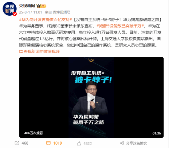 有观点指出,缺乏自主可控的操作系统,就难以避免在关键技术领域被“卡脖子”。为了突破这一困境,华为在过去六年中持续投入大量资源,累计研发资金达数百亿元,并每年配备超过一万名研发人员参与相关工作。截至目前,鸿蒙系统的代码量已超过1.3亿行,其核心基础代码也已实现开源。