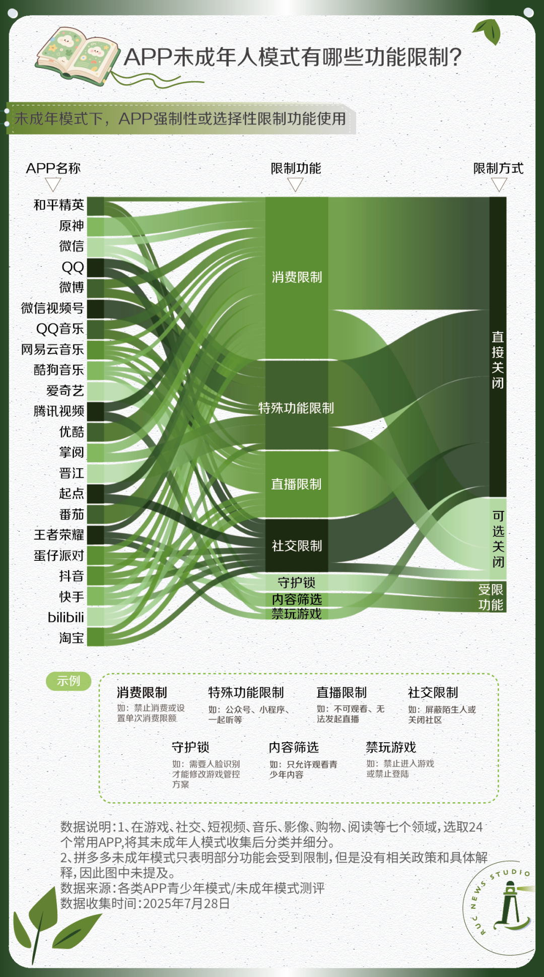 同时,虽然APP根据各自功能特点在时间、内容、消费、社交等多个维度划定了清晰的“禁区”,但“过度禁止”的情况也不容忽视。