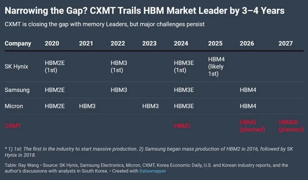 同日,韩国媒体报道称,长鑫存储预计在年底完成HBM3量产认证,并计划在2027年量产HBM3E。若按此节奏,中国厂商与内存三巨头的时间差将从8年缩短至约4年,甚至3年。