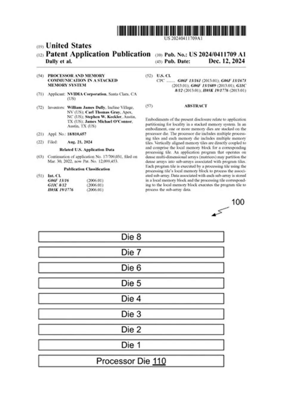 实际上,英伟达已经于2024年8月就向美国专利局提交了一份专利申请,并于12月获批。这项专利是一种3D堆叠式“存储近计算”架构,通过让处理器裸芯片与存储裸层层堆叠并一一对应,提升了数据局部性和运算效率,特别适用于AI大模型训练和高性能计算场景。
