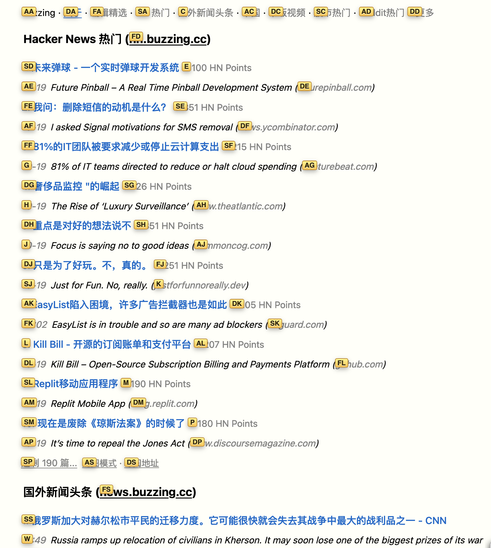 当我习惯这个操作之后,发现这比用鼠标操作的效率高了不少。尤其我是Buzzing的重度用户,buzzing 上的各种链接非常适合用键盘进行导航和浏览,极大的提高了我浏览 buzzing 的效率。