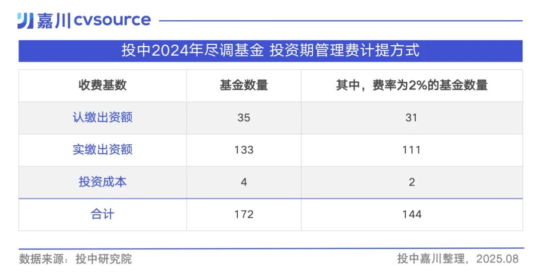 2024年至今,投中研究院尽调了172支新设基金,对他们的管理费计提方式进行了研究。