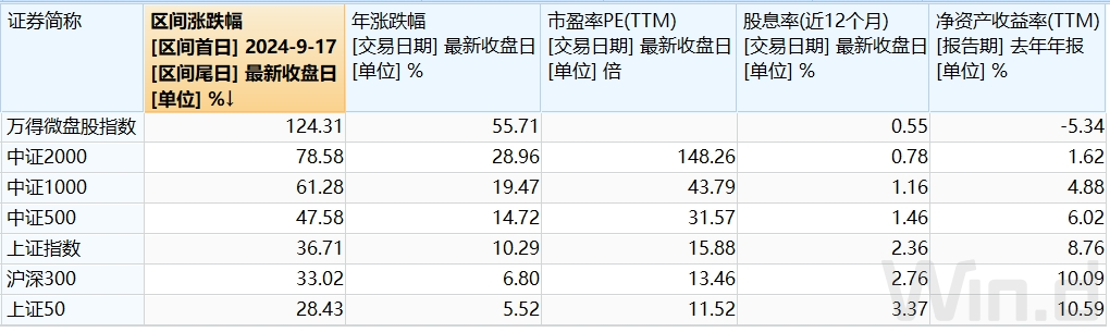 今年以来,截止8月15日,上证50指数上涨5.51%、沪深300指数上涨6.79%,中证1000、中证2000指数分别上涨19.47%和28.96%,万得微盘股指数上涨55.71%;2024年9月17日以来,上证50指数和沪深300指数分别上涨28.42%和33.02%,中证1000、中证2000指数分别上涨61.28%和78.58% 、万德微盘股指数涨幅124.31%。