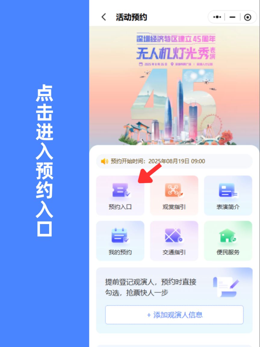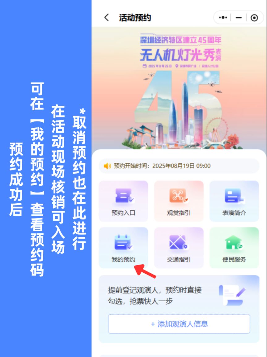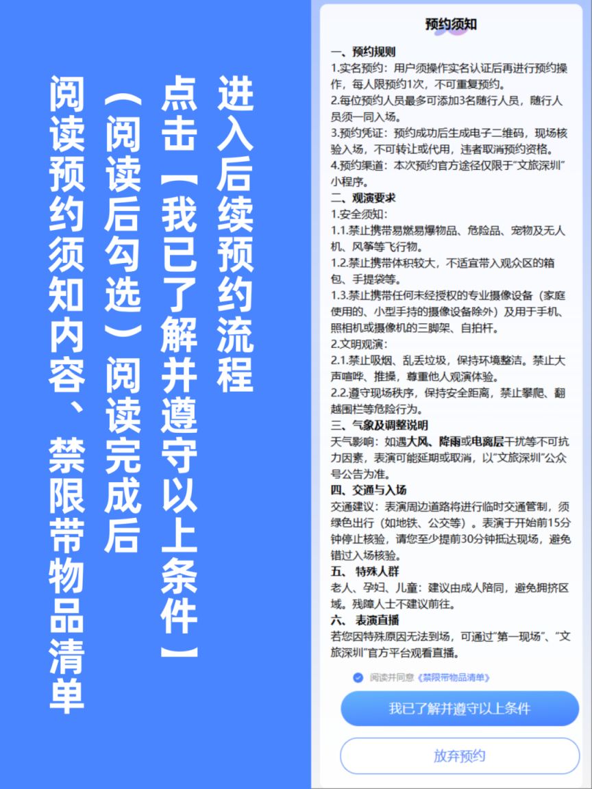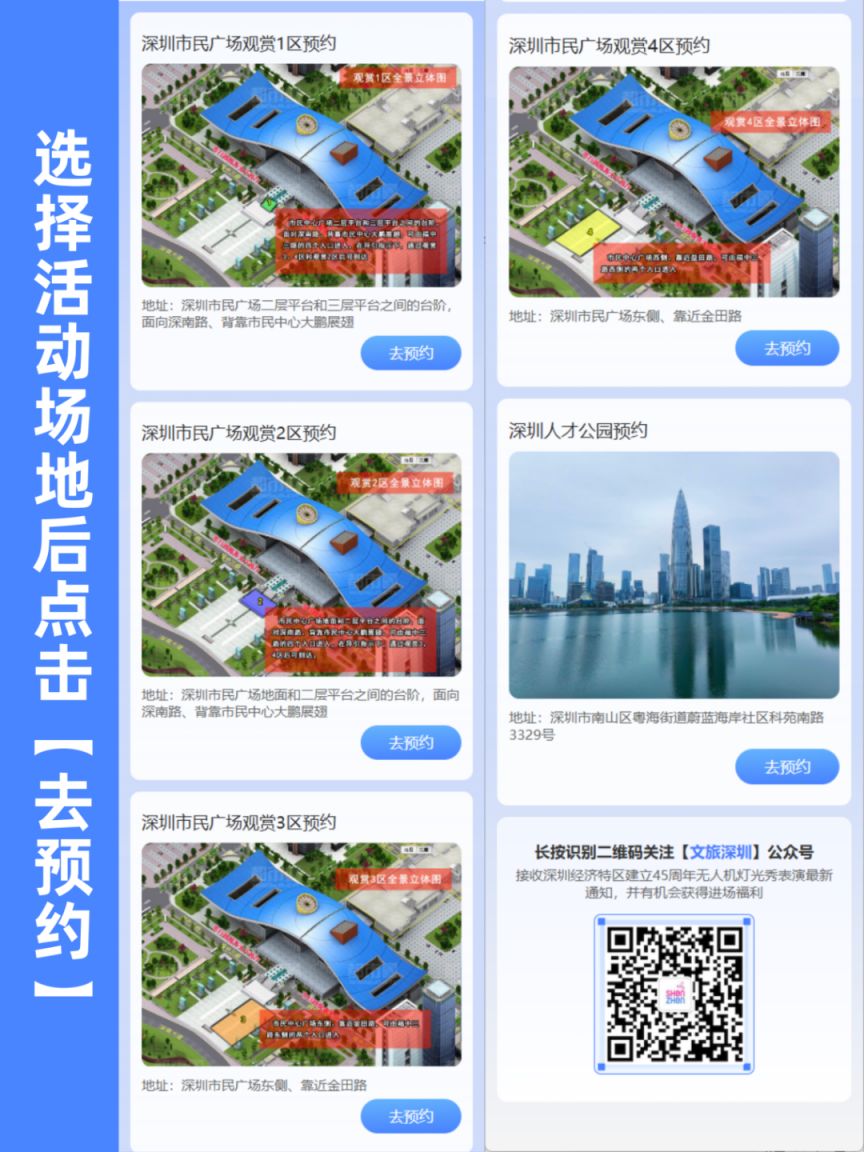 本次演出在深圳市民广场和深圳人才公园各提供了预约观演名额。