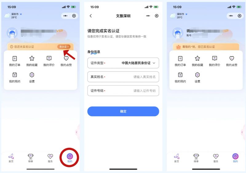 2.点击右下角【我的】页面,选择【去认证】后,输入身份信息即可完成认证。