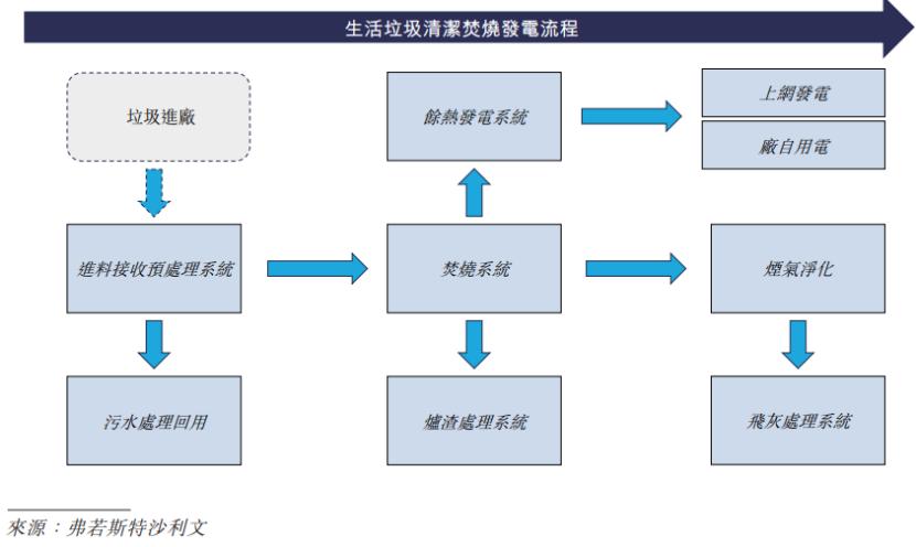 从垃圾焚烧的流程来看,生活垃圾经城市收运系统转运至焚烧厂,称重后暂存于垃圾储坑,渗滤液由底部收集系统送入污水处理系统。