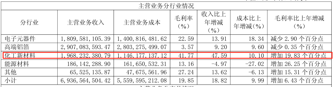作为手握6万吨配额的玩家,东阳光同样是这场盛宴最大受益者之一。上半年公司化工新材料实现营收19.68亿元,同比增长47.57%,毛利率为41.77%,同比增长了19.83个百分点。拉动公司整体毛利率从历史约14%水平跃升至20.14%。最终实现净利润6.13亿元,同比狂飙170.57%。