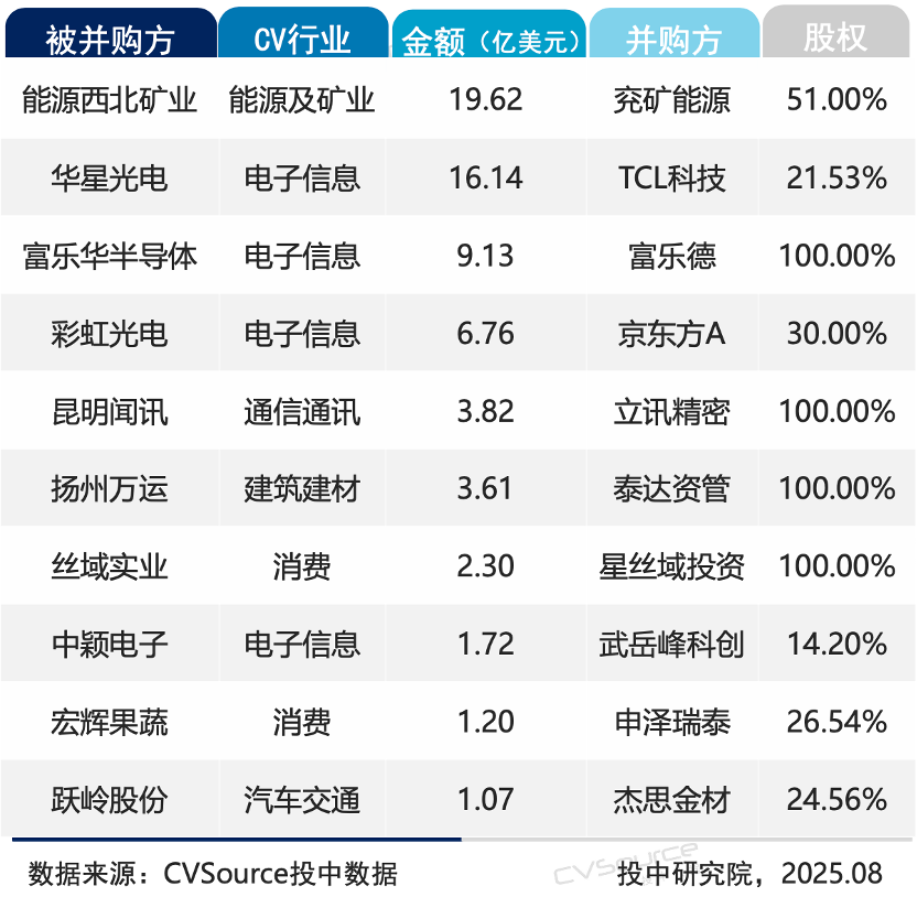 其中,兖矿能源收购西北矿业51%股权、富乐德收购富乐华半导体、京东方收购彩虹光电30%股权等,都是本月大额交易代表。