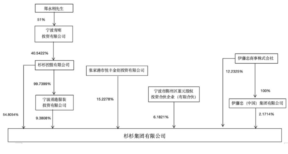 杉杉控股和旗下的宁波甬港服装投资有限公司出资合计占比64.2%,为控股股东