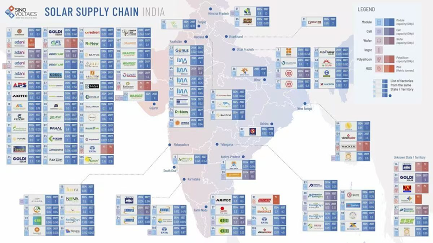 (印度太阳能供应链地图 来源:Sinovoltaics)