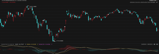 今日国债期货早盘高开至116.54元后维持震荡,午后买盘集中涌入,价格快速拉升突破早盘高点,最终收于116.54元,较上日上涨0.23%。从形态看,本周TLM合约最低下探至116.01元,且MACD指标双线金叉向上释放反弹信号。