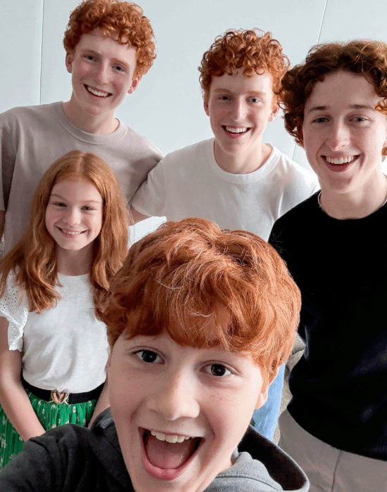 确认出演的演员分别是:Tristan Harland饰演弗雷德·韦斯莱,Gabriel Harland饰演乔治·韦斯莱,Ruari Spooner饰演珀西·韦斯莱,Gracie Cochrane饰演金妮·韦斯莱。与此同时,一组剧照也同步释出,照片中可见四位演员与饰演罗恩的Alastair Stout一同出镜,几位角色正亲密地挤在一起拍摄一张自拍照。
