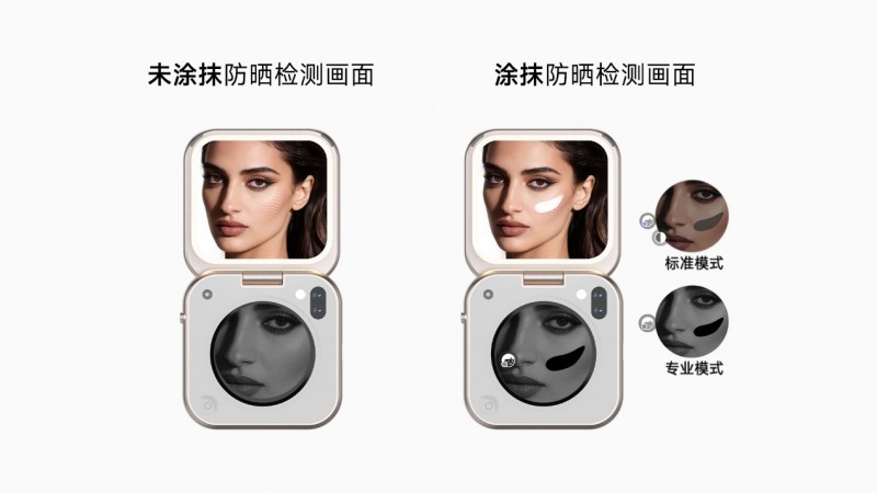 UV 检测功能是该款产品的一大特色,它能实时显示防晒霜的涂抹状态,及时捕捉漏涂区域,帮助使用者确保防晒措施做到位,有效抵御紫外线伤害。
