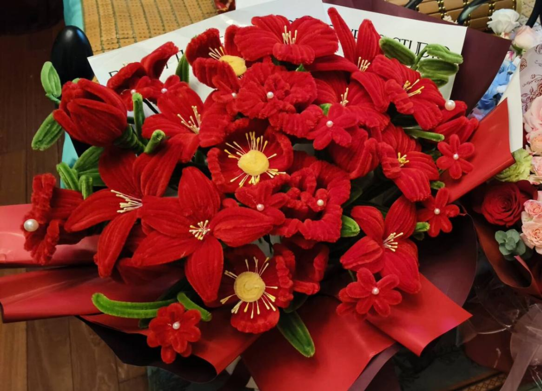 小候鸟们用扭扭棒为志愿军老战士制作的花束