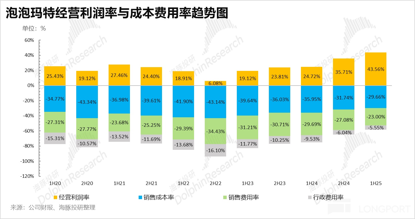 从费用率上看,首先销售费用上,由于公司加大了海外线上平台(Ins,TikTok 等)的引流,渠道获客成本远低于传统渠道,因此销售费用率下降 6.7pct 达到 23%;而管理费用率上,一方面公司上半年加强了供应链的智能化管理,有效降低了运营复杂度,另一方面,泡泡玛特重新进行了公司内部架构的梳理,在大中华区、美洲区、亚太区、欧洲区分别设置区域总部,提升决策效率,管理费用率下降 4pct 达到 5.5%,最终净利率大幅提升 12pct 达到 34%。
