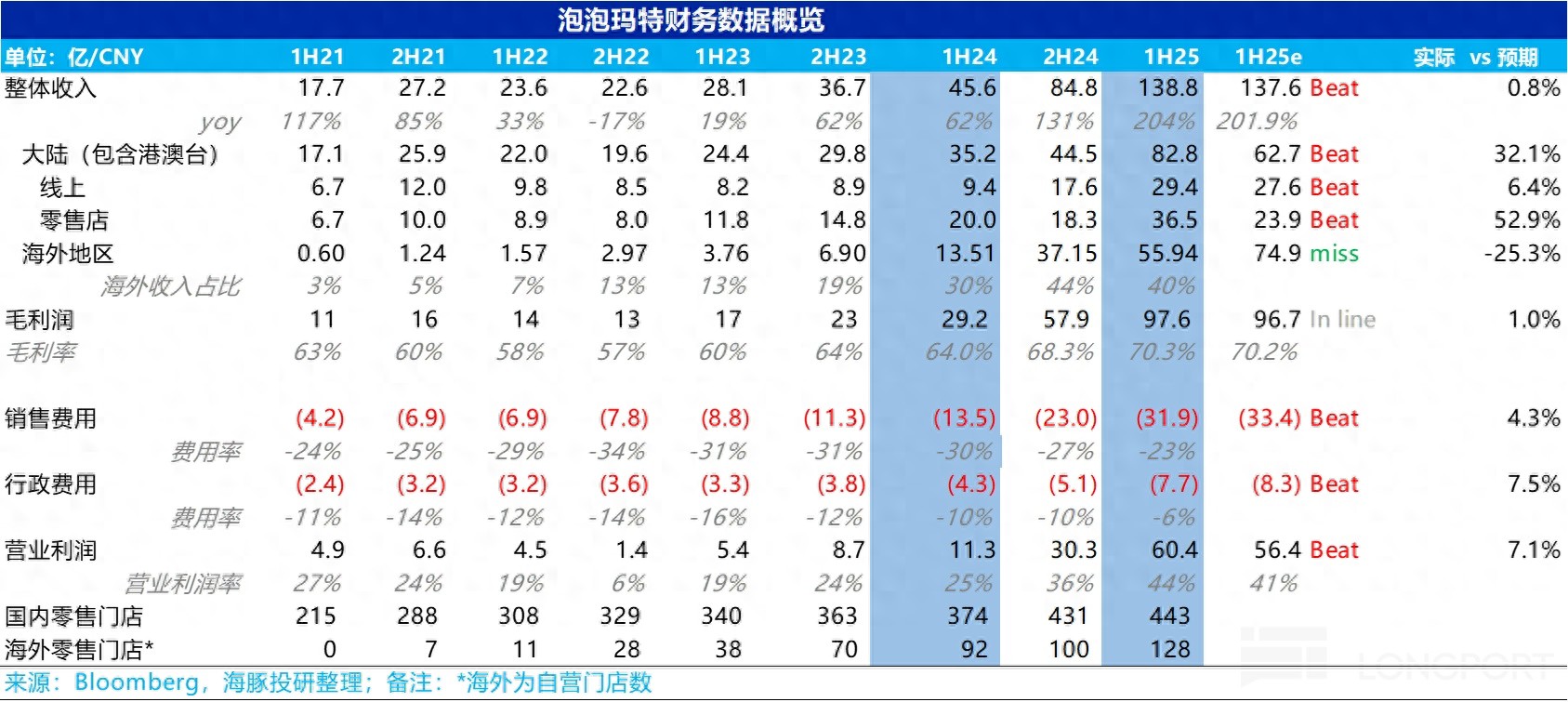 国内实现营收 82.8 亿元(包含港澳台),同比增长 135.2%,伴随公司品牌知名度的提升、多元化产品品类&IP 的推新,国内线下零售门店的客流量大幅高于去年同期水平。但由于卖方普遍按月跟踪国内重点门店的销售情况,因此收入端很难有比较大的预期差。