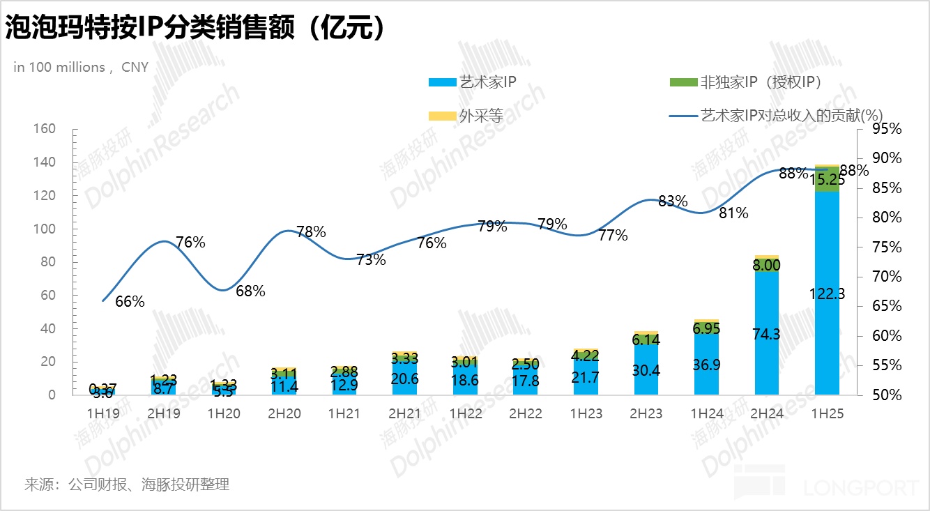 IP 作为泡泡玛特所有业务的灵魂,下半年海豚君认为核心需要观察 1)在海外旺季到来时,THE MONSTERS 系列的占比会不会进一步走高,如果产能瓶颈解决,下半年 THE MONSTERS 系列在海外持续放量,高基数下对 2026 年的业绩压力可能会比较大。2)星星人,CRYBABAY 系列的热度能否进一步走高,带动占比提升缓解依赖单一 IP 的压力。