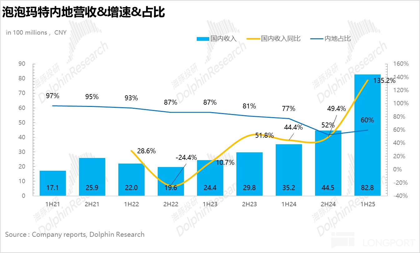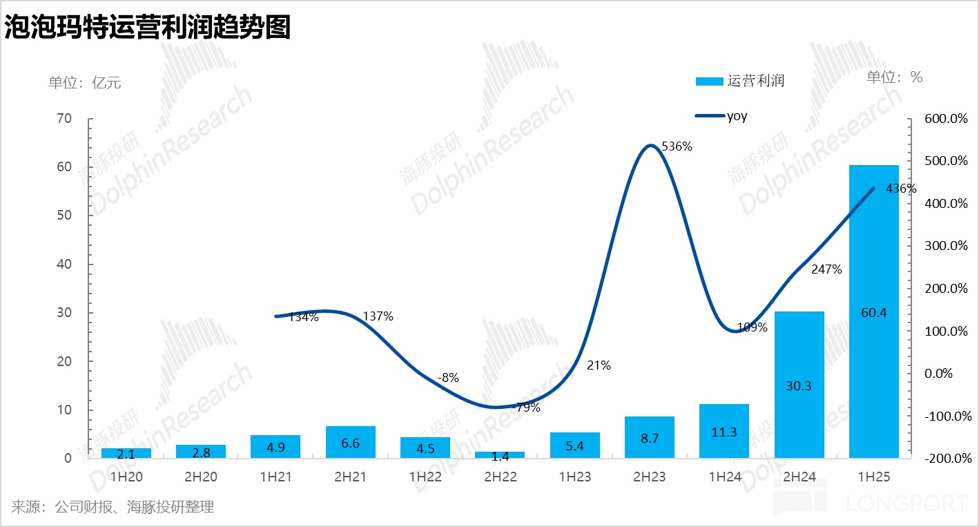 $泡泡玛特(09992.HK) 北京时间 8 月 19 日晚间,泡泡玛特(9992.HK)发布了 2025 年 H1 业绩,无论是营收还是利润均超过了去年全年水平,仍然是一份不错的答卷。和前不久公布的预增公告相比,收入基本持平的基础上,重点在于利润同比增长接近 400%(预增公告显示不低于 350%),超出市场预期。
