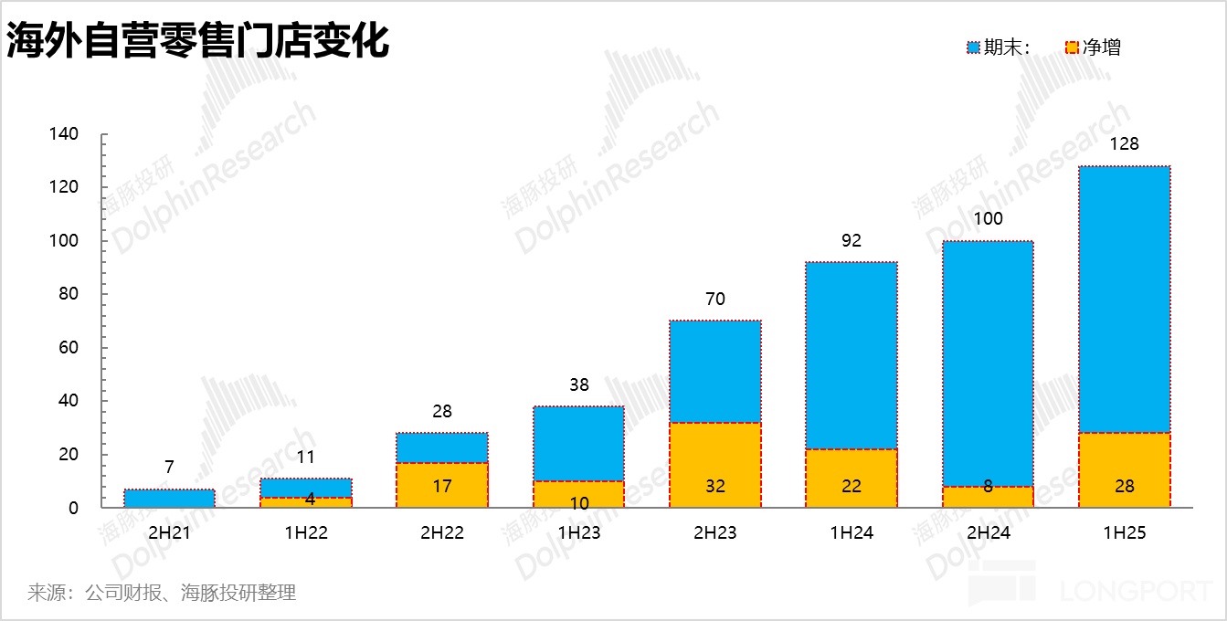 结合公司 2025 年全年新开 100 家以上海外门店的目标,海豚君预计下半年仍然会在欧美地区加速开店。