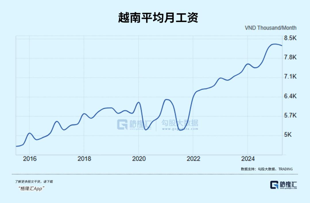 而相对应的,越南人的平均收入,是在2022年下半年才开始上涨的,至今涨幅不到30%。
