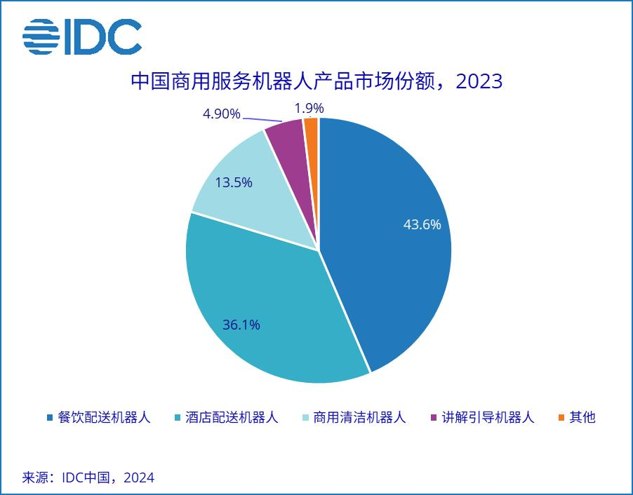 2023年IDC报告显示,餐饮配送、酒店配送、商用清洁机器人是商用服务机器人市场出货量前三产品。