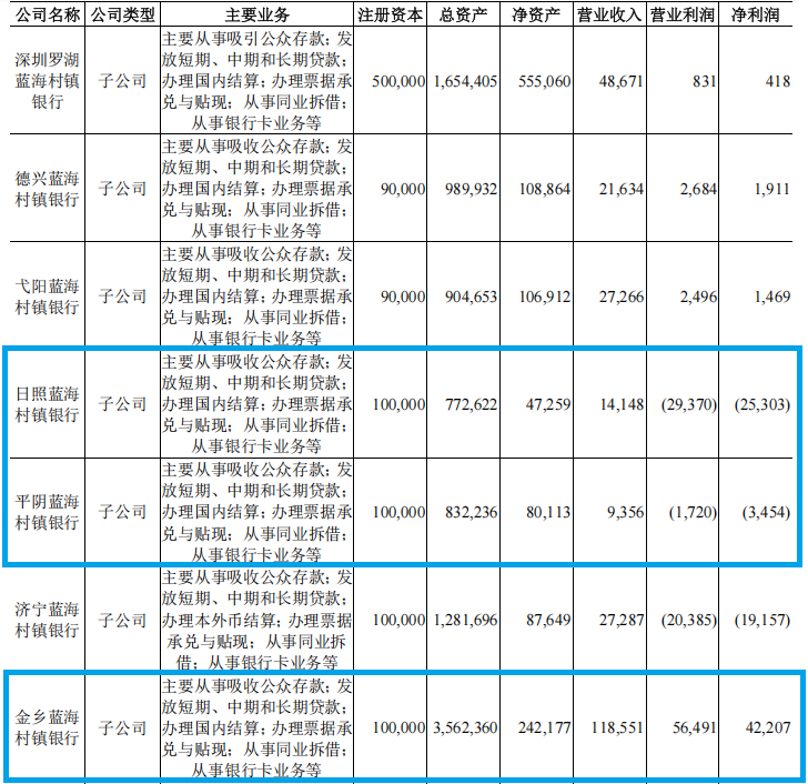 截至目前,青农商行旗下控股参股的村镇银行有9家,其中持有日照蓝海村镇银行15%股权(表决权比例为60%)、金乡蓝海村镇银行31%股权(表决权比例为61%)、平阴蓝海村镇银行52%股权(表决权比例为62%)。