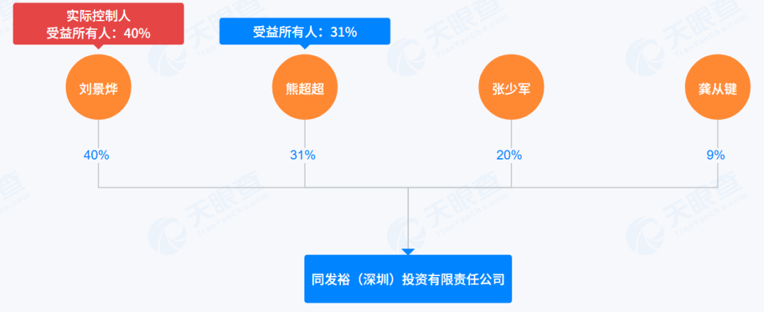 天眼查显示,同发裕成立于2015年8月14日,注册资本1000万元,法定代表人刘景烨。后者也是同发裕实控人,持有40%股权。