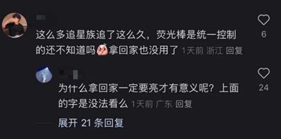然后最想建议的是荧光棒能不能让我们大大方方带走,因为我觉得这些都是属于我的情绪价值。汪苏泷,陶喆,王力宏都不能带走,所以我带黑色书包进去的,我必须带走。