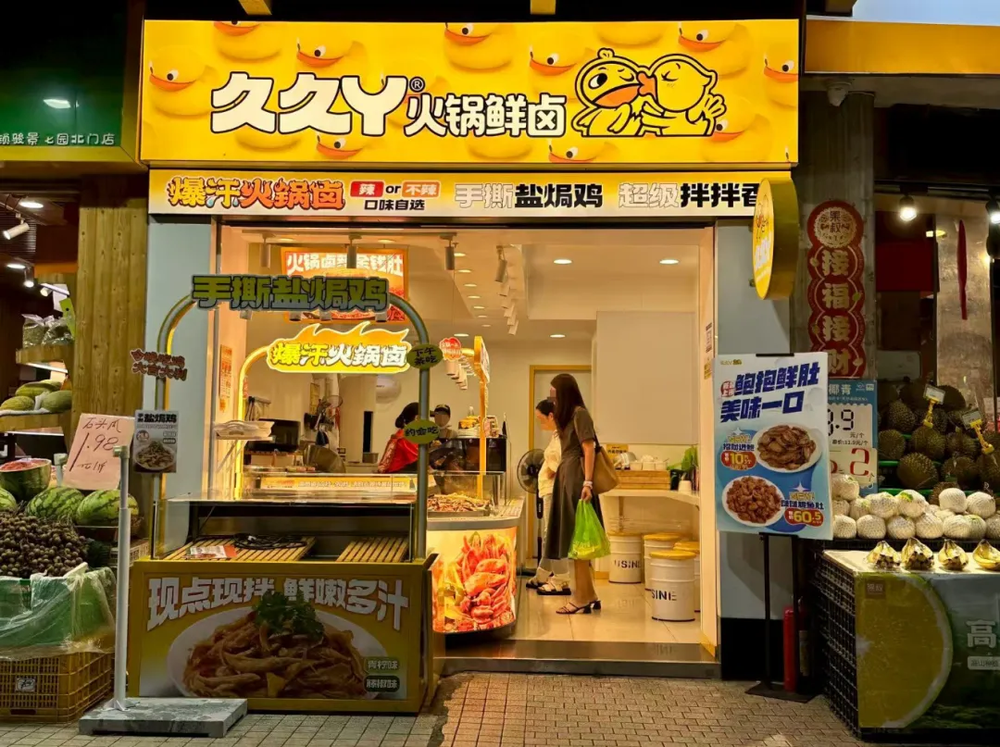 久久丫也在年初于部分门店试点引入煎饼果子、广式牛杂、肉夹馍、猪脚饭、酸辣粉等地域特色小吃、主食,尝试从单一休闲卤味向“快餐+轻正餐”复合业态转型。