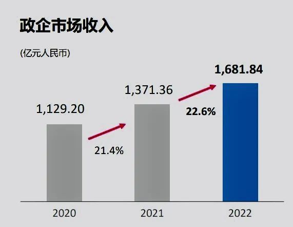 分析三大运营商的政企类业务收入,从下图可以看到,无论是中国移动的政企市场收入,还是中国电信的产业数字化收入、中国联通的算网数智收入,近三年来的收入增幅均在10%以下,已经告别了“跑马圈地”式地快速增长阶段。