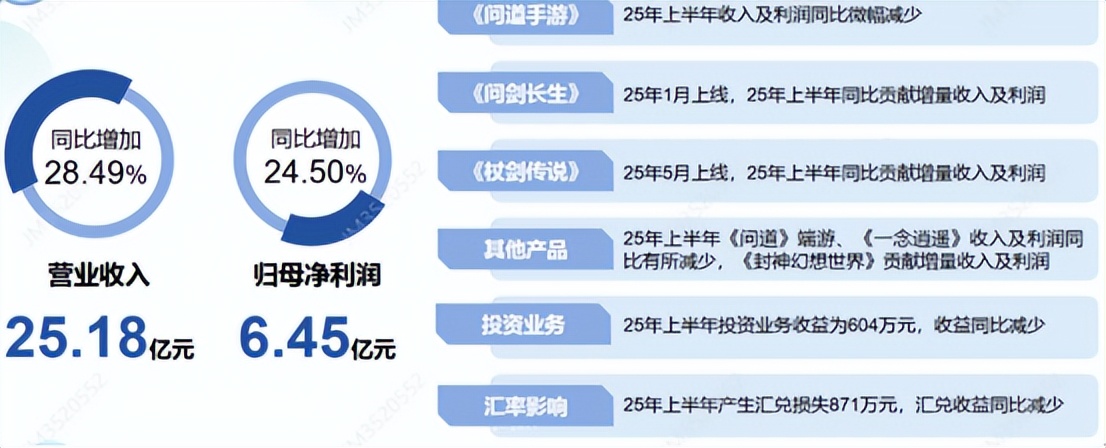 8月19日,吉比特发布了半年报。上半年营业收入25.18亿元,同比增长28.49%;归母净利润6.45亿元,同比增长24.50%。