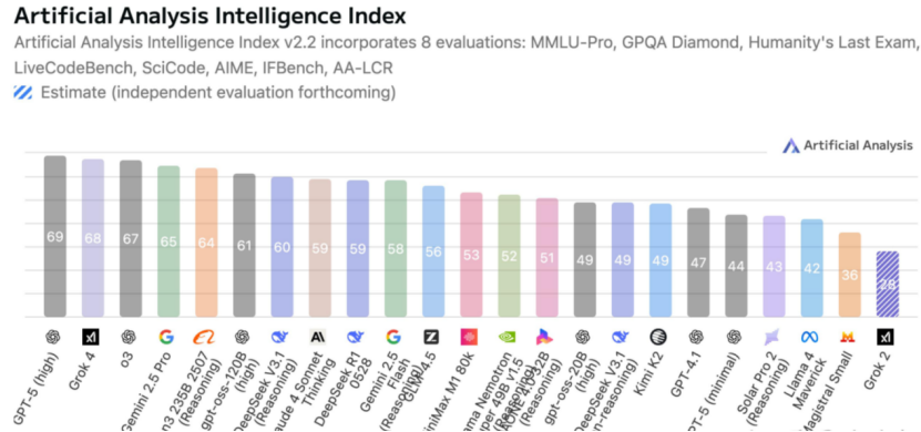 在Artificial Analysis平台上,其最新的12月版本,智能指数为28。