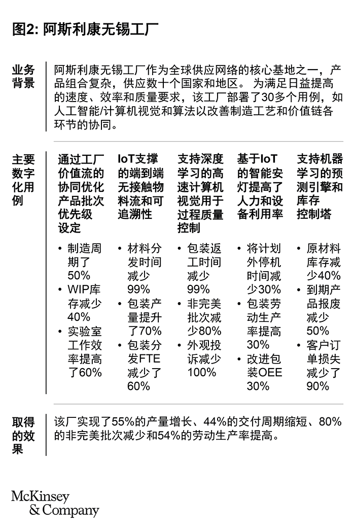 作为一家有20年历史的工厂,实现真正数字化转型并不容易。然而,阿斯利康通过制定挑战目标、投资于人才及第四次工业革命技术,部署了30多个用例,如人工智能/计算机视觉和算法以改善制造工艺和价值链各环节的协同,大幅提升了产品质量和供应链敏捷性。