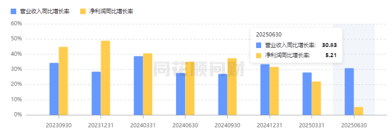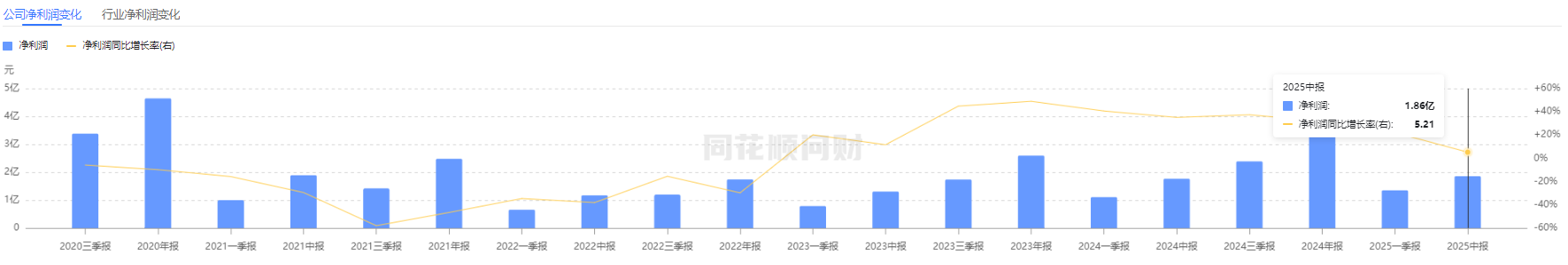 公司上半年归母净利润1.86亿元,同比仅增长5.21%,扣非后净利润1.77亿元,同比微升6.64%。分季度看,第二季度归母净利润仅5069.52万元,同比下降23.08%;扣非净利润4329.42万元,同比下降30.22%,与上半年整体30.83%的收入高增形成强烈反差。
