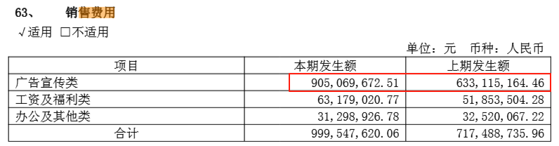 其中,用于广告宣传的费用高达9.05亿元,去年同期该项费用为6.33亿元,同比高增42.97%。这直接导致了上半年增收不增利的局面。