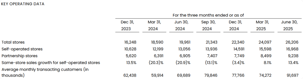 还值得注意的是,瑞幸咖啡2025年第二季度销售及市场推广费用为5.925亿元,较2024年同期的4.326亿元增长37.0%。该增长主要由于广告及其他推广费用以及支付给第三方外卖及直播平台的佣金增加。