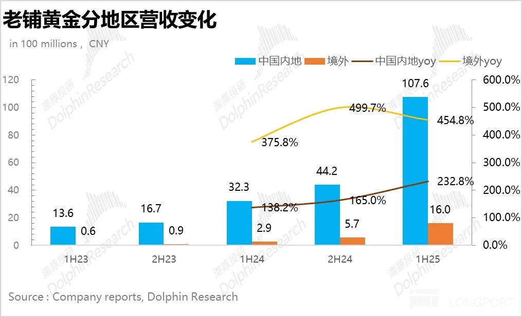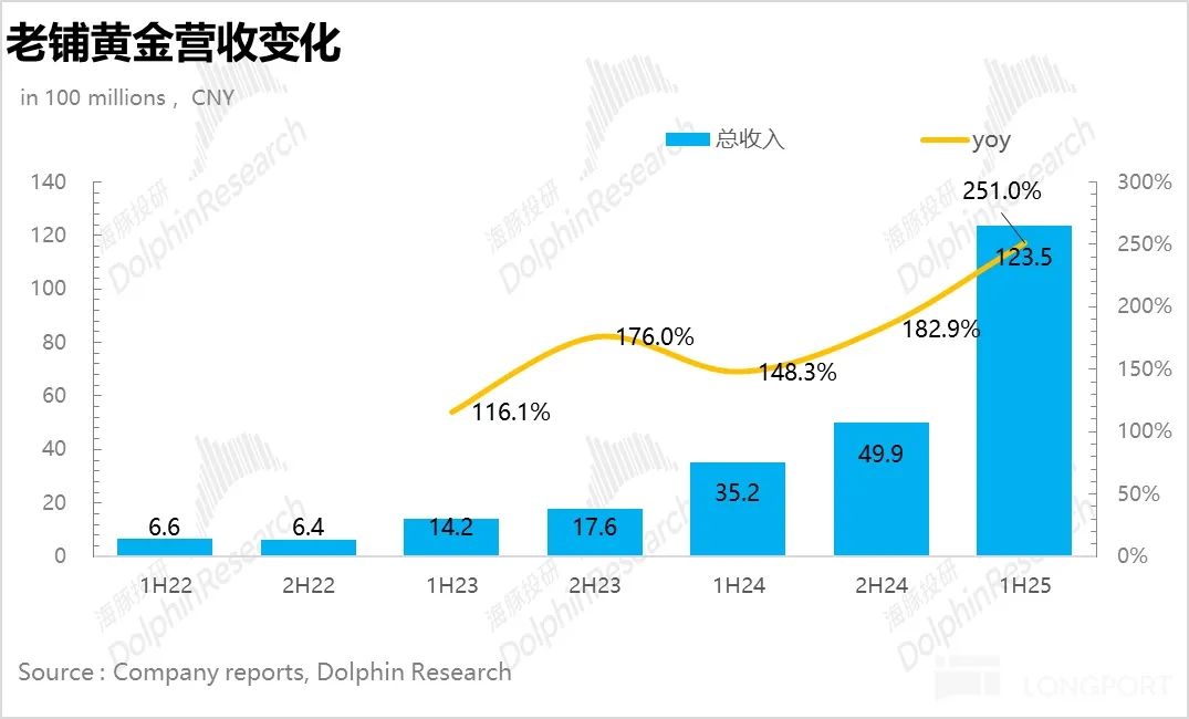 25H1 老铺黄金实现总营收 123.5 亿元,同比增长 251%,接近指引上限。