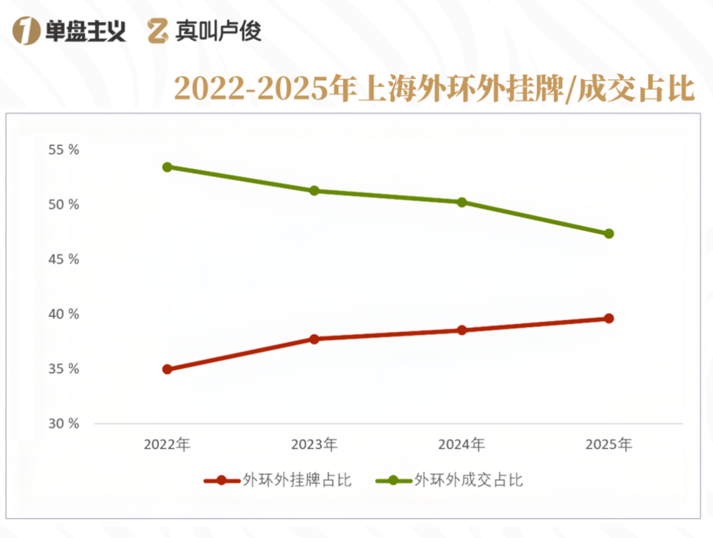 所以在很长一段时间,上海的楼市基本面就是——一手房是新房在郊区,二手房是老破小在市中心,二者相互独立又相互依存,所以一直以来上海外环外的二手房挂牌量和成交量一直就不多。